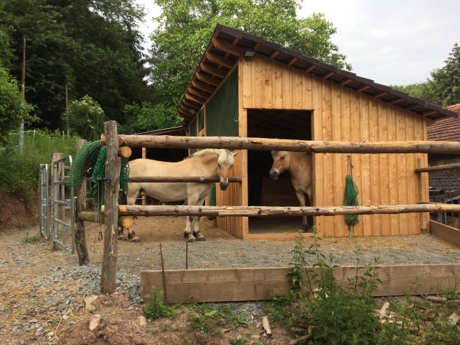 Mit nur zwei Wochen Verspätung ist unser Umbau fertig geworden, die zwei Norweger-Stuten sind eingezogen und fühlen sich sichtlich wohl.