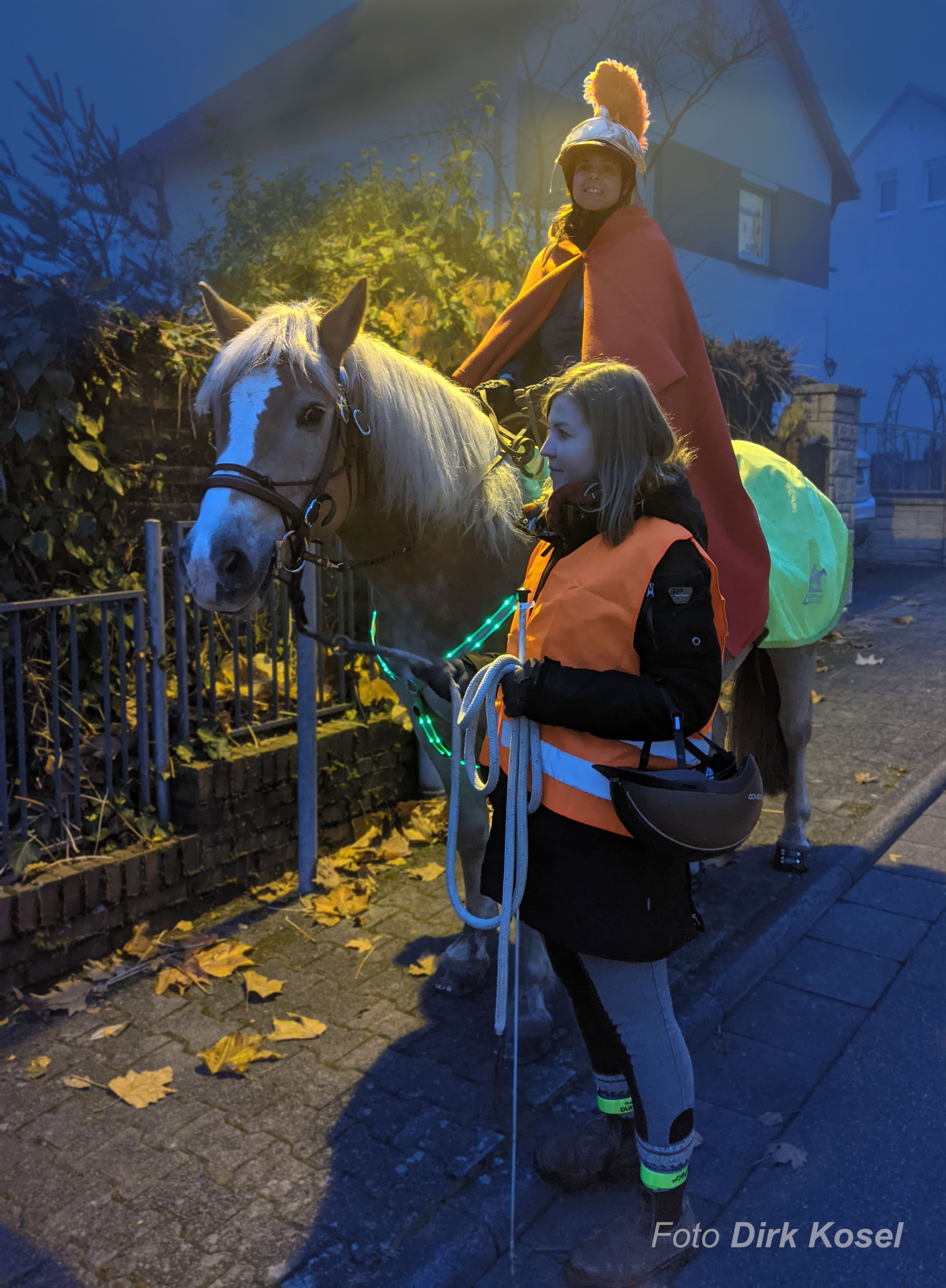 Mein Mann hat vor ein paar Jahren mit seiner Stute den Sankt Martin gespielt und ich fand das total aufregend und habe mir sehr gewünscht, das mit Tammi auch mal zu machen. Nach ein paar entsprechenden Andeutungen hat das Kita-Team mich dann tatsächlich gefragt, ob ich als Sankt Martin reiten will.