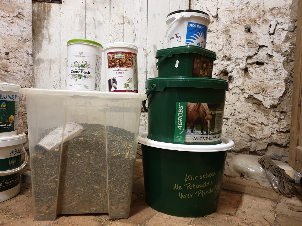 Ganz so einfach ist es nicht. Pferde in freier Wildbahn nutzen bei normalem Bewuchs eine Fläche von ca 50 Hektar pro Pferd, bei üppigem Bewuchs sind es auch mal 10 Hektar pro Pferd. Will man sein Pferd natürlich ernähren, dann ist ein Hektar pro Pferd ein guter Anfang, wobei bei dieser Flächengröße bereits Weidemanagement betrieben werden muss. So sagt es jedenfalls Marc Lubetzki in seinem Online-Themenabend „Die Speisekarte der Pferde“. In der Landwirtschaft rechnet man ebenfalls mit einem Hektar Fläche pro Pferd, um das Pferd ganzjährig zu ernähren. Allerdings sind so große Flächen in der Pferdehaltung eher selten, zumindest in Ballungsräumen wird man das kaum finden. Deshalb wird zumeist Heu zugefüttert, das von Flächen stammt, die nicht für die Pferde gut erreichbar und eingezäunt sein müssen. Wir haben für 18 Pferde insgesamt 6 Hektar Weideland zu Verfügung, das heißt 1/3 Hektar pro Pferd. Außerdem füttern wir ganzjährig Heu, so dass wir mit der Größe unserer Weiden gewährleisten können, dass die Pferde in der Weidesaion täglich 8 bis 12 Stunden auf den Weiden sein können, davon tatsächlich satt werden und sich gut und gesund ernähren.