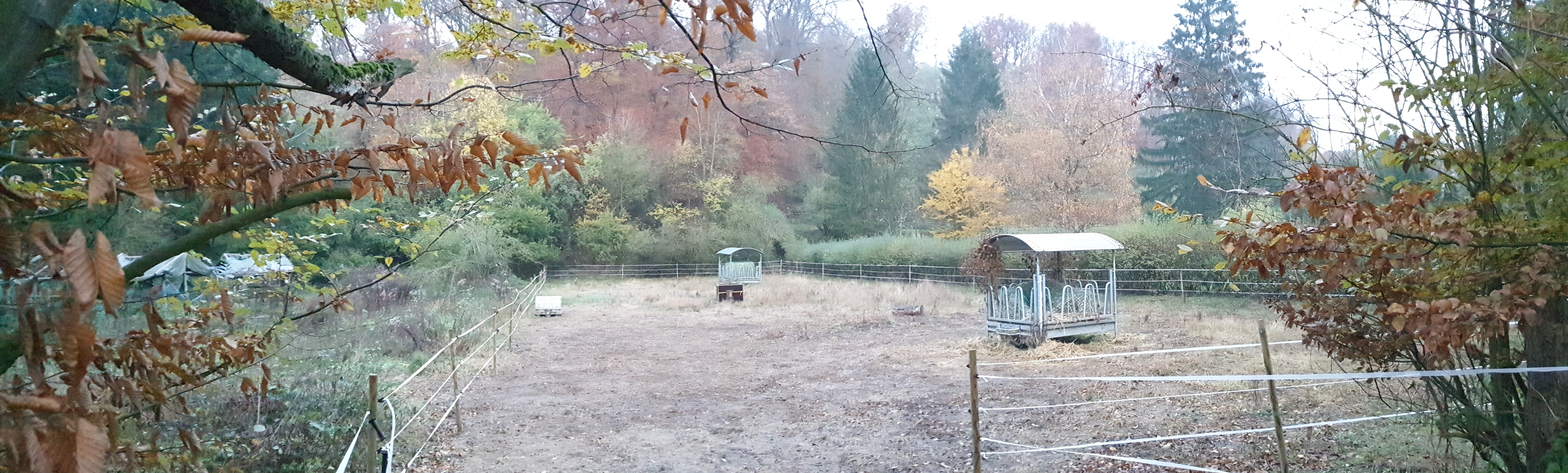 Es kommt jedoch vor, dass die Pferde nicht zum Ausgang kommen möchten. Manchmal kann ich erkennen, dass sie zwar zum Stall möchten, aber den Ausgang nicht passieren wollen. Ich kann mir vorstellen, dass im Bereich des Ausgangs während der Weidezeit vielleicht Wildschweine im Wald waren. Manchmal ist es auch nur ein umgefallener Baum, der sie ängstigt. Dann hat es sich bewährt, gemeinsam mit dem Pferd, das die Aufgabe hat vorneweg zu gehen, die „Gefahrenstelle“ zu passieren.