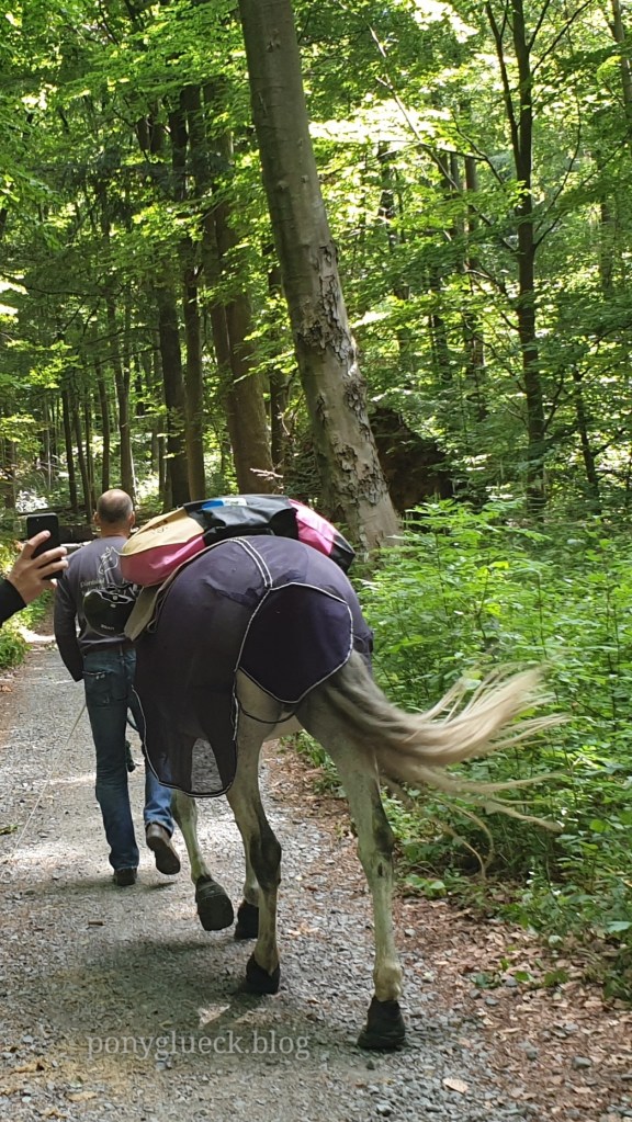 10:30 Uhr am Treffpunkt eintrudeln, Reitpferd absatteln, Packpferd bepacken (diese halbe Stunde fällt natürlich weg, wenn man direkt am Stall startet)