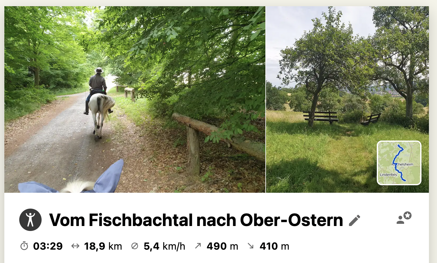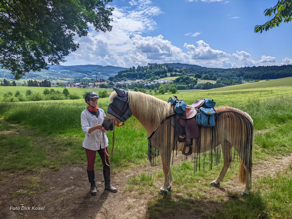 Gestartet sind wir bei uns am Stall. Am ersten Tag sind wir ins Fischbachtal zur Tannenhof-Ranch geritten. Die Route habe ich in Komoot geplant und mit der Wanderreitkarte abgeglichen. Eine riesen Hilfe war dabei die tolle Anleitung von „Pferdefrau unterwegs„. Auch die Packliste als Excel Datei ist großartig! Beides hat mir die Vorbereitung erheblich erleichtert und dafür gesorgt, dass wir gut vorbereitet waren und unsere Tour unbeschwert genießen konnten.