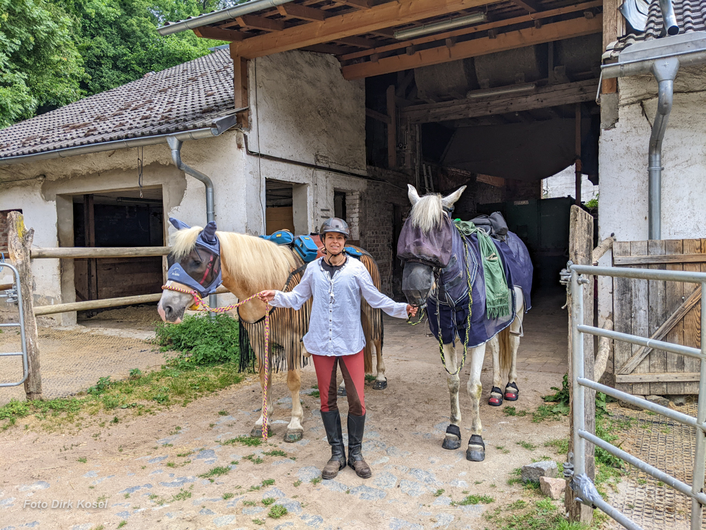 Was mich besonders froh macht: beide Pferde sind in guter Verfassung am Ziel angekommen. Keine Anzeichen von Stress, Erschöpfung, Druck- oder Scheuerstellen. Offensichtlich hat die sehr lange Vorbereitungszeit auch ihr Gutes.