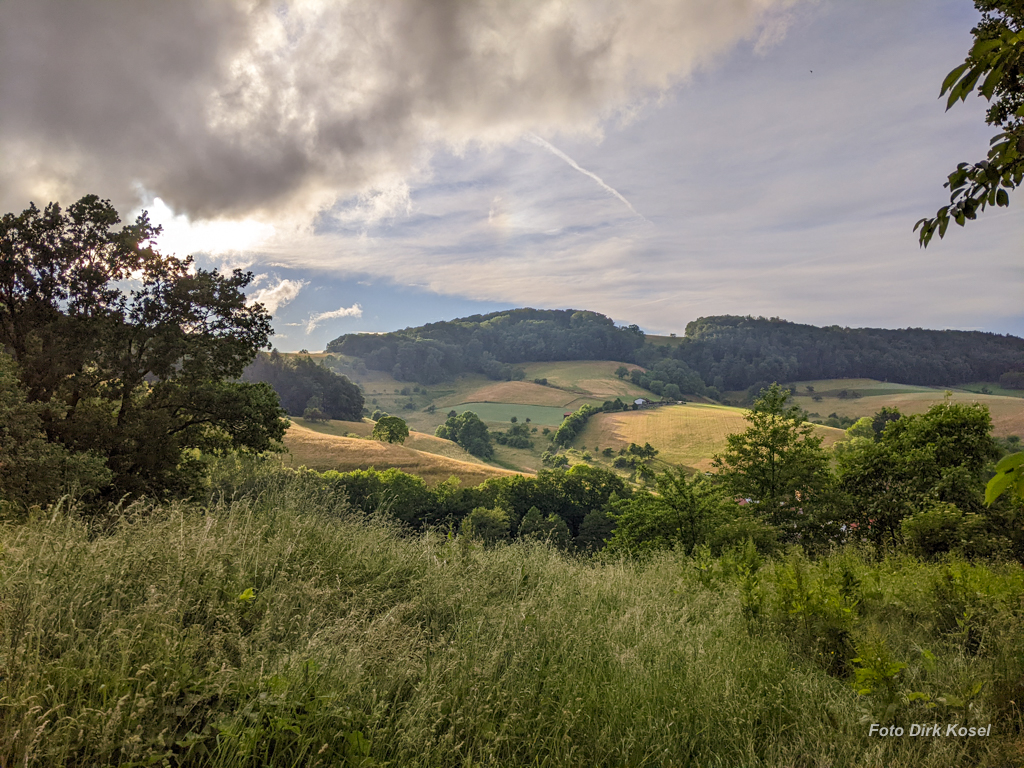 Etwa 3 Kilometer vor unserem Ziel zog ein Gewitter auf und der angekündigte Regen fiel erst tropfenweise, dann als richtiger Regen und zum Schluss in einer Art Sturzflut vom Himmel. Irgendwann zwischen Regen und Sturzflut hätten wir laut Routenplanung vom Waldrand auf’s offene Feld abbiegen müssen. Und genau in diesem Moment sehe ich aus dem Augenwinkel eine Schutzhütte. Wir haben zu viert gerade so rein gepasst und waren verdammt froh, das Unwetter vom sicheren Unterstand aus vorüberziehen zu sehen.